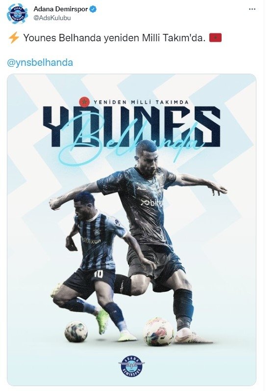 Adana Demirspor’un sosyal meyda hesabından yapılan paylaşıma göre Belhanda, milli takıma çağırıldı.
