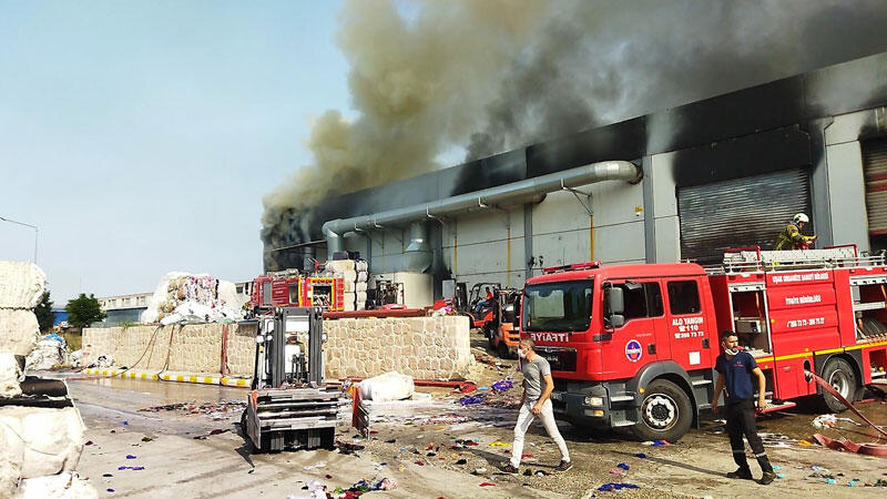 Uşak’ta, iplik fabrikasında çıkan yangında, duvarların yıkılması ile alevler daha da büyüdü. Yangını söndürme çalışmaları sürerken, dumandan etkilenen 1 itfaiye eri de Uşak Üniversitesi Tıp Fakültesi Eğitim ve Araştırma Hastanesi’ne kaldırıldı. Tedaviye alınan itfaiye erinin sağlık durumunun iyi olduğu belirtildi.